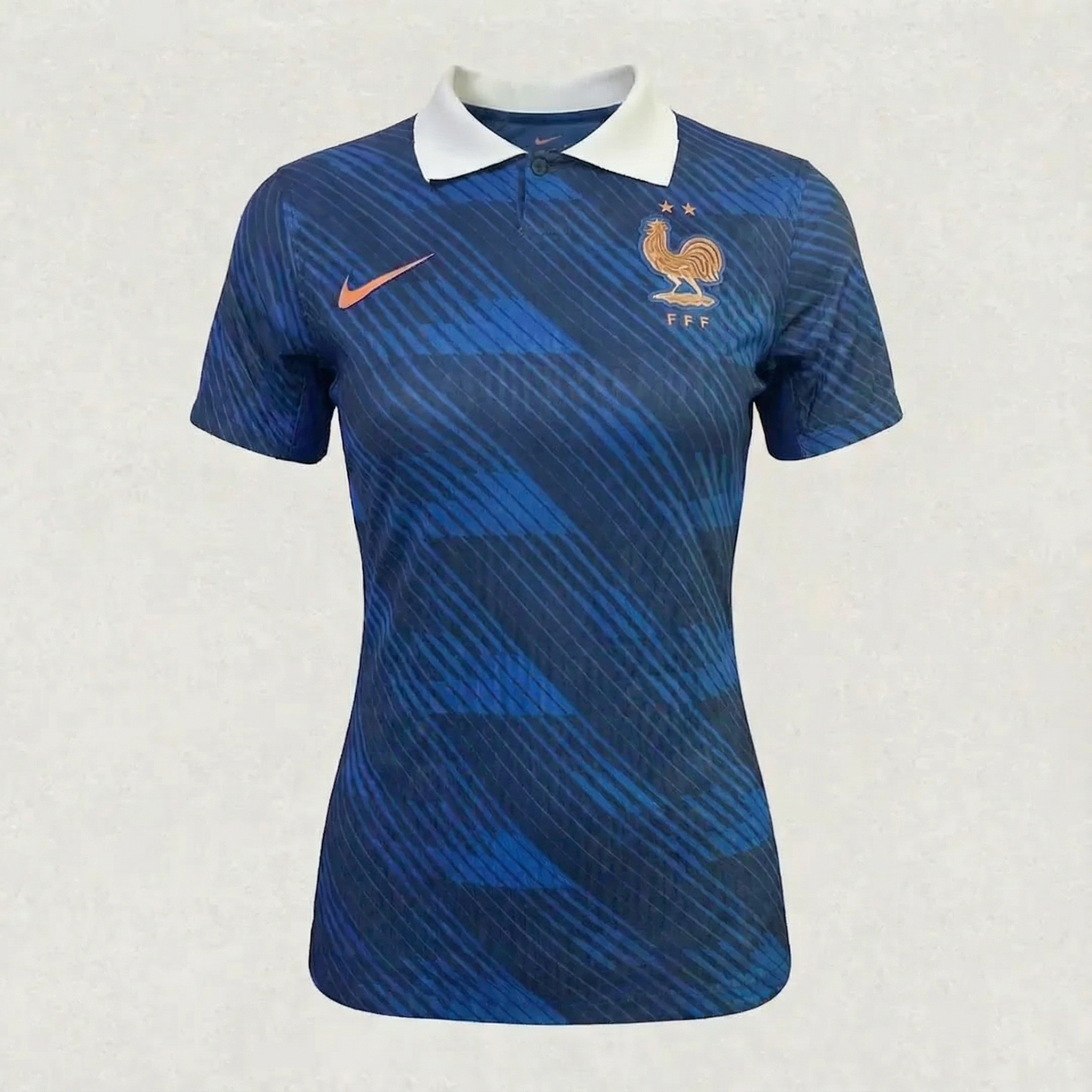 The France 2025 Home Jersey for women brings together timeless French elegance and modern football culture. Featuring the iconic col Claudine neckline and a refined tweed style trompe l’oeil print, this design delivers a fashion forward twist on a classic national look. Inspired by heritage yet built for today, the jersey reflects France’s identity with sophistication and confidence, making it perfect for matchday and everyday wear.