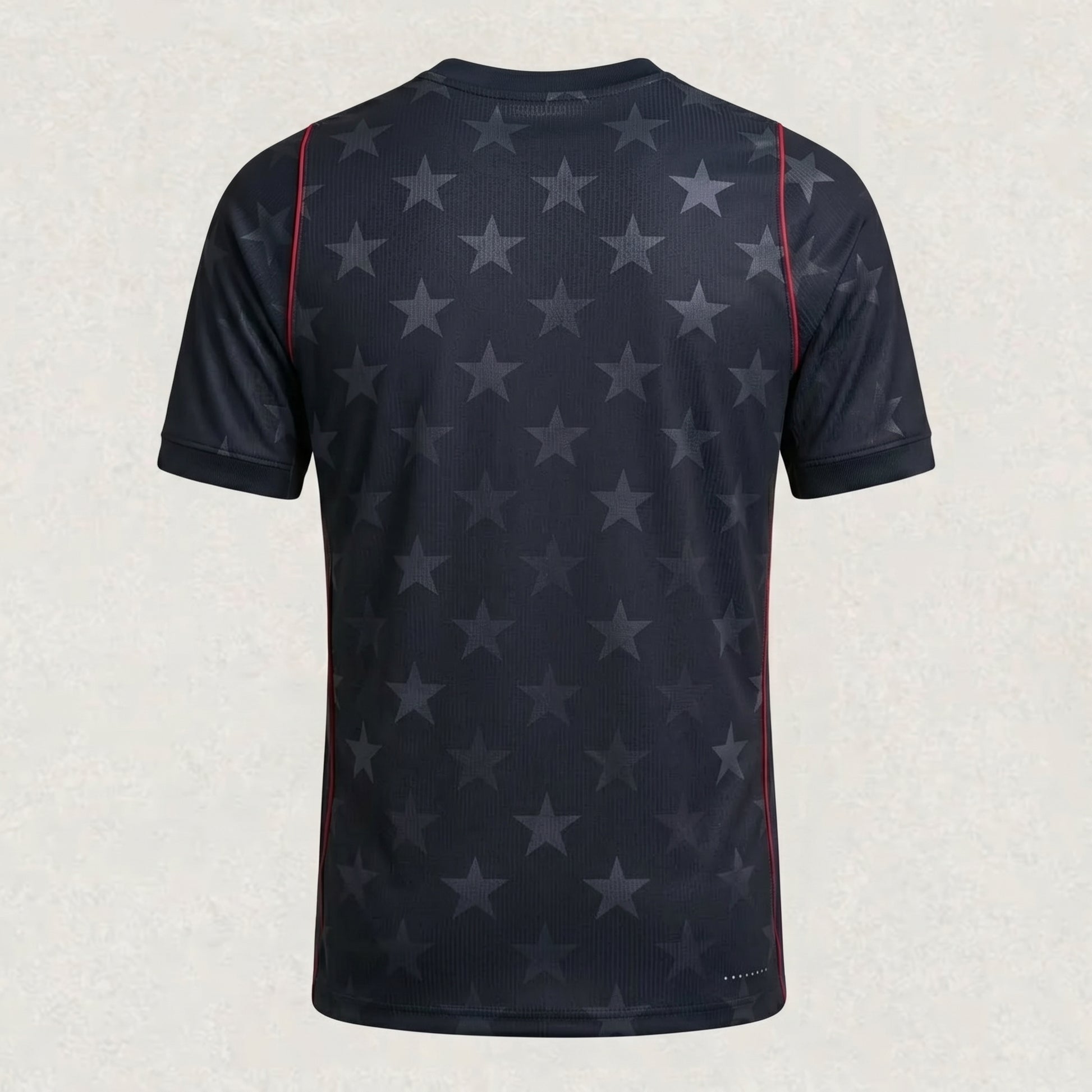 The United States 2026 World Cup Away Jersey delivers a striking and sophisticated look built around a deep navy black base, giving the team a powerful and commanding presence on the world stage. The standout feature is the bold, all-over tonal star graphic, which covers the front and sleeves in an iconic tribute to the "Stars and Stripes." This innovative design adds modern depth and character while maintaining a sleek, professional aesthetic that captures the ambition of the USMNT as a host nation.